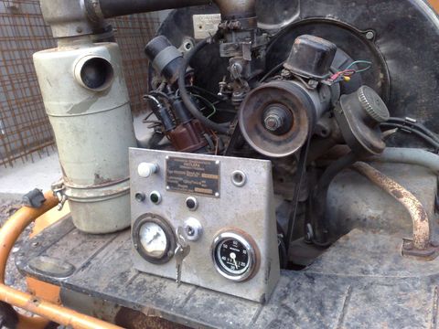 Derweil ging es an die Wiederbelebung des Kompressors: Vergaser gereinigt, Zündung eingestellt und der läuft wieder. Wer den Klang des Käfers kennt ist enttäuscht, er läuft nur auf 2 Zylinder, die beiden anderen Zylinder fördern ca. 1250l/Minute.